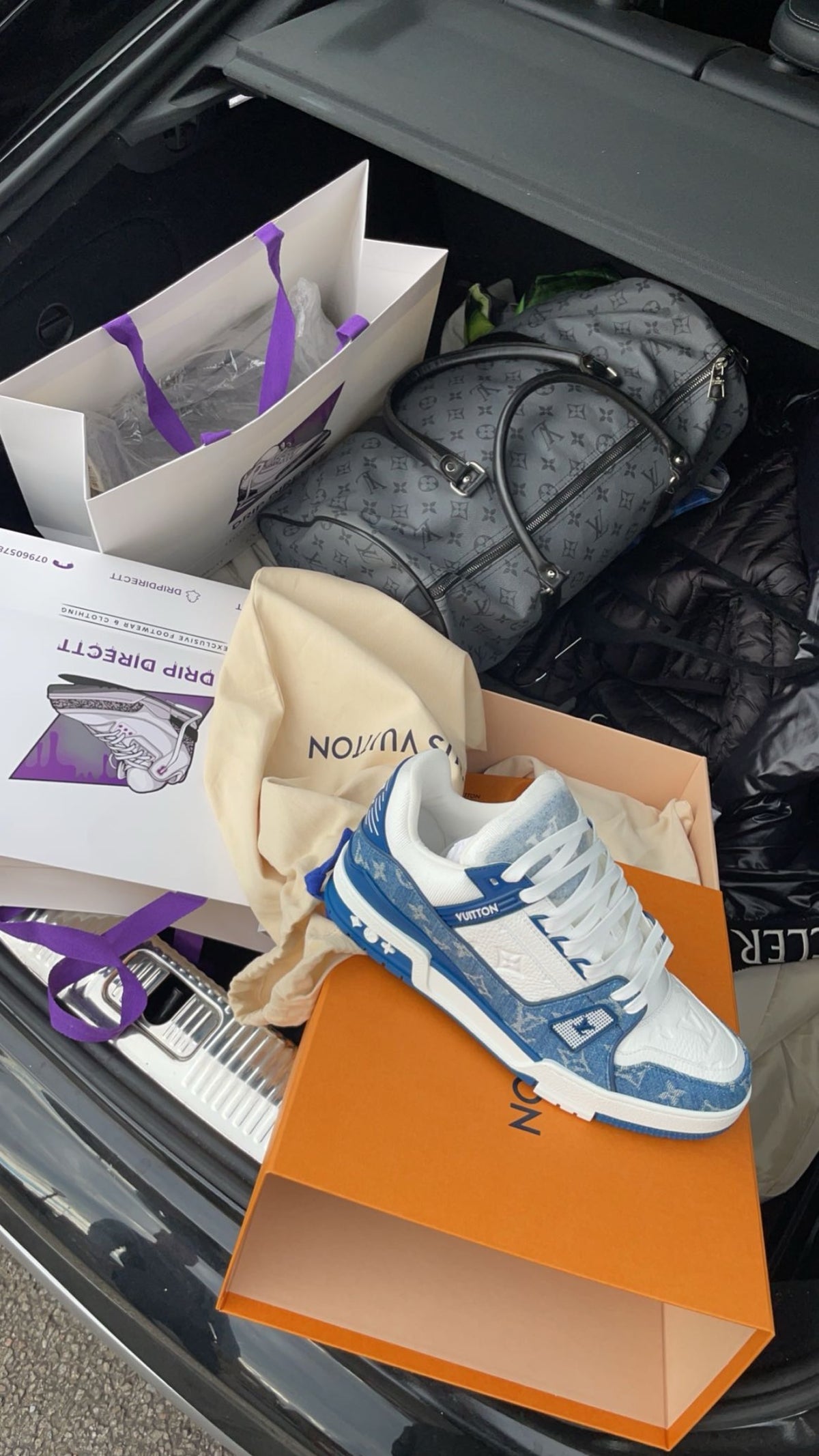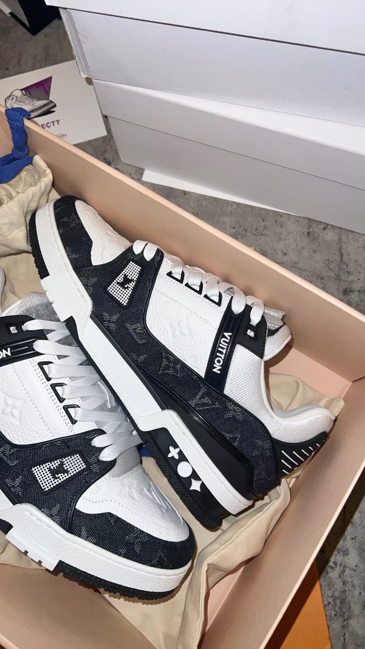 The Louis Vuitton Denim Trainers are a stylish blend of luxury and casual wear. Crafted with premium materials, they often feature the iconic Monogram denim fabric, paired with high-quality leather accents.