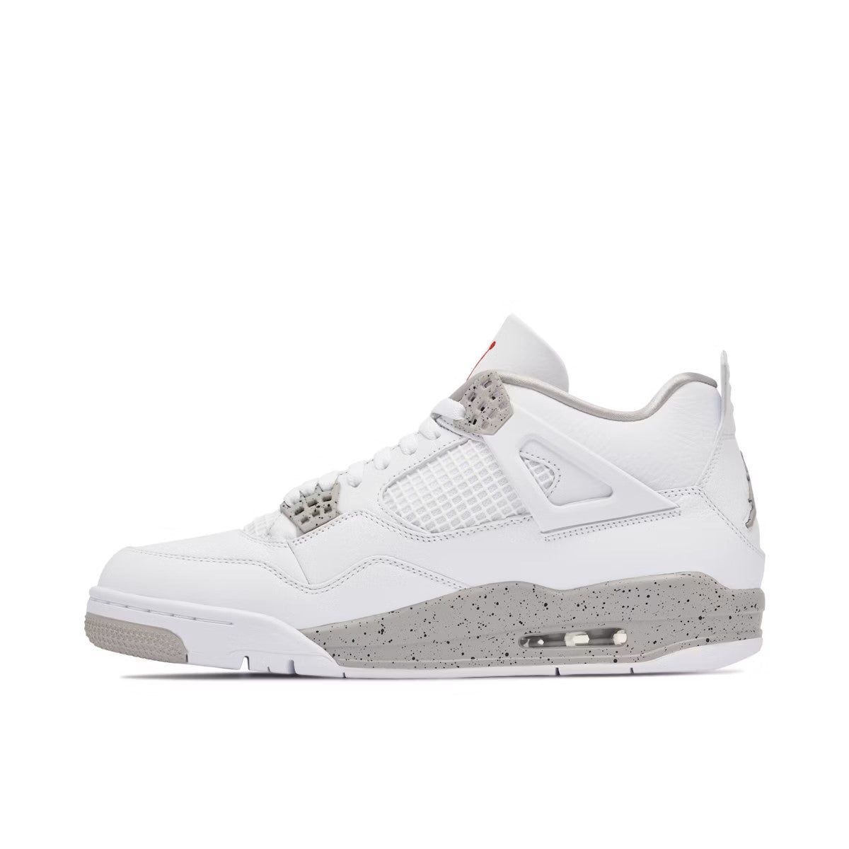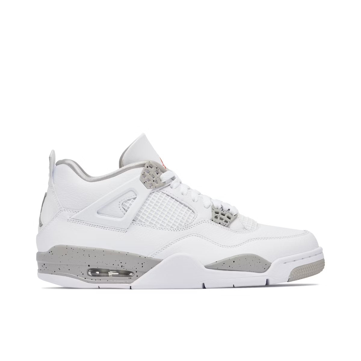 The Air Jordan 4 Retro White Oreo features a white leather and mesh upper with hits of Tech Grey on its eyelets and midsole. From there, a red Jumpman logo is embroidered on the tongue, adding a pop of colour to the neutral-toned design.
