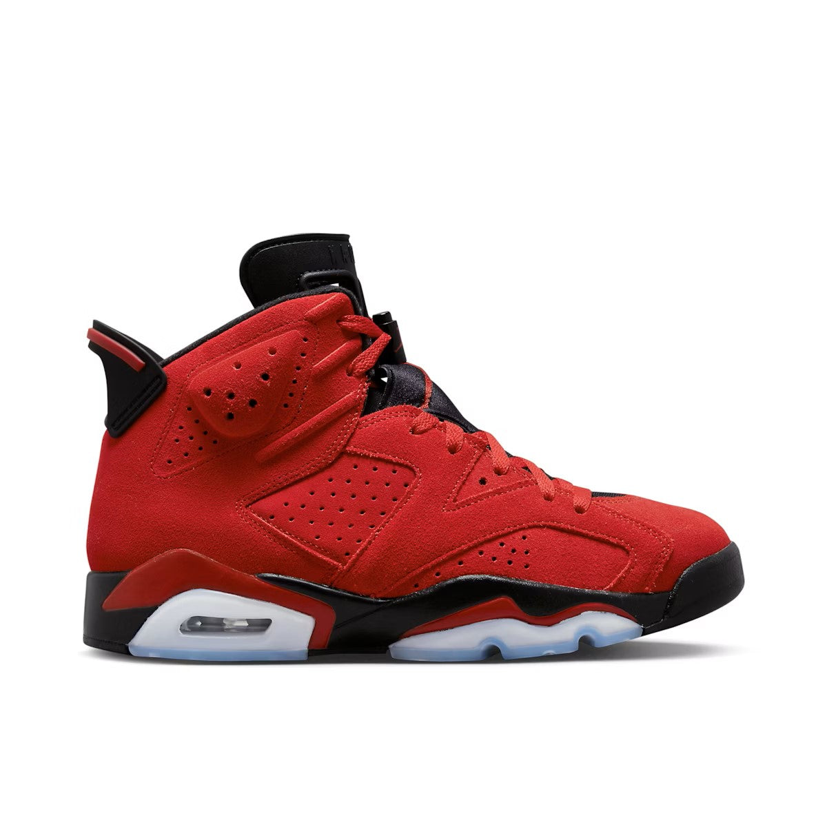 Stepping into 2023 with undeniable swagger, the Jordan 6 Retro made its fiery entrance with the Toro Bravo edition, released on May 24, 2023. This model features a bold blend of premium materials, proving once again why Jordan brand continues to lead the sneaker game. The upper is adorned with Varsity Red premium suede, giving it that stand-out Jordan style. The eye-catching red is contrasted perfectly with black accents throughout, from the midsole to the iconic Jumpman logo, ensuring a strong visual impact on and off the court.