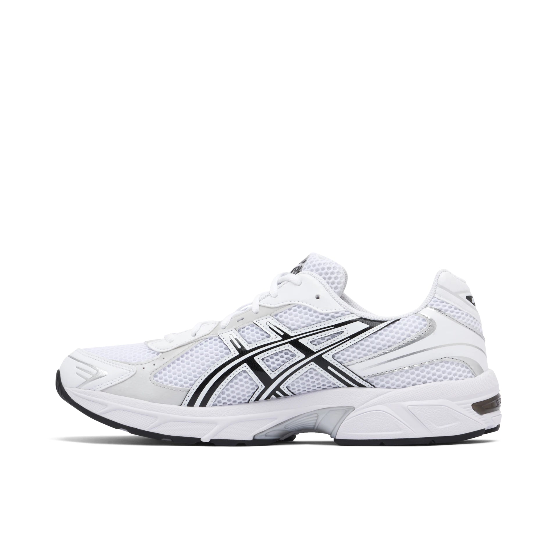 The ASICS Gel - 1130 White Black is a performance running shoe with a design rooted in the technical running sneakers from the early 2000s. The 'White Black' version of the ASICS Gel-1130 finds inspiration in the GEL-KAYANO 14 and the ninth iteration of the GEL-1000 series. Although the model was first introduced in 2008, this version features an all-white base with black and silver accents. The upper is made of lightweight mesh with a loose weave that gives the sneaker an airy feel. Synthetic leather overlays cross the mesh base and contribute to the shoe’s technical silhouette.