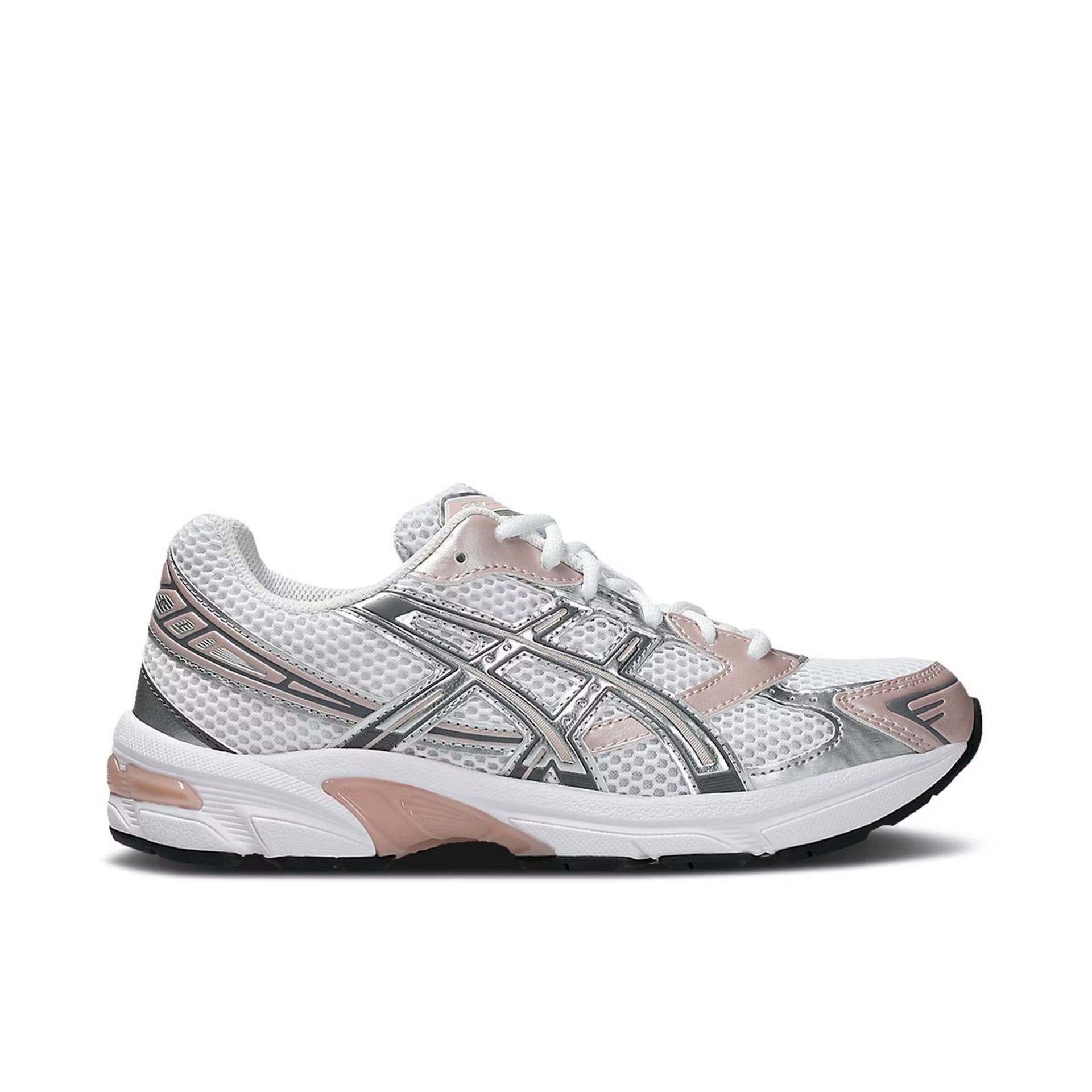 The ASICS Gel-1130 White Neutral Pink (Women's) adds a rose gold-inspired colorway of white and Neutral Pink to the Gel-1130’s technical silhouette. While the base comes in airy, white mesh, the signature tiger strip overlays are made from synthetic leather in the White Neutral Pink (Women's) ASICS Gel-1130. The change in materials from genuine leather to synthetic makes this version of the Gel-1130 stand out from models dating back to the early 2000s. It gives the sneaker a modern upgrade and allows the metallic silver accents to catch the light.