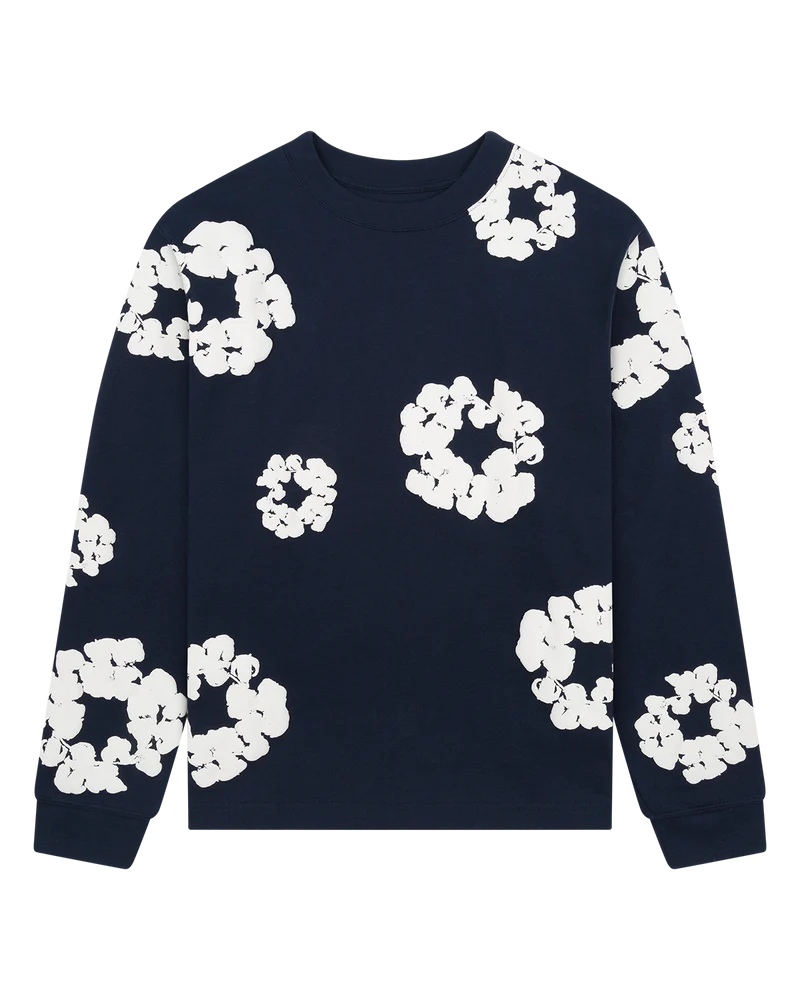 Denim Tears Long Sleeve Cotton Wreath Tee Navy