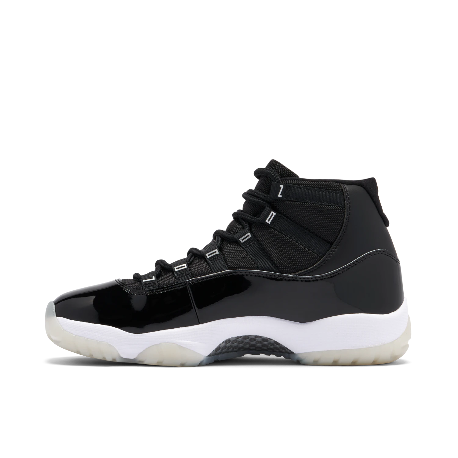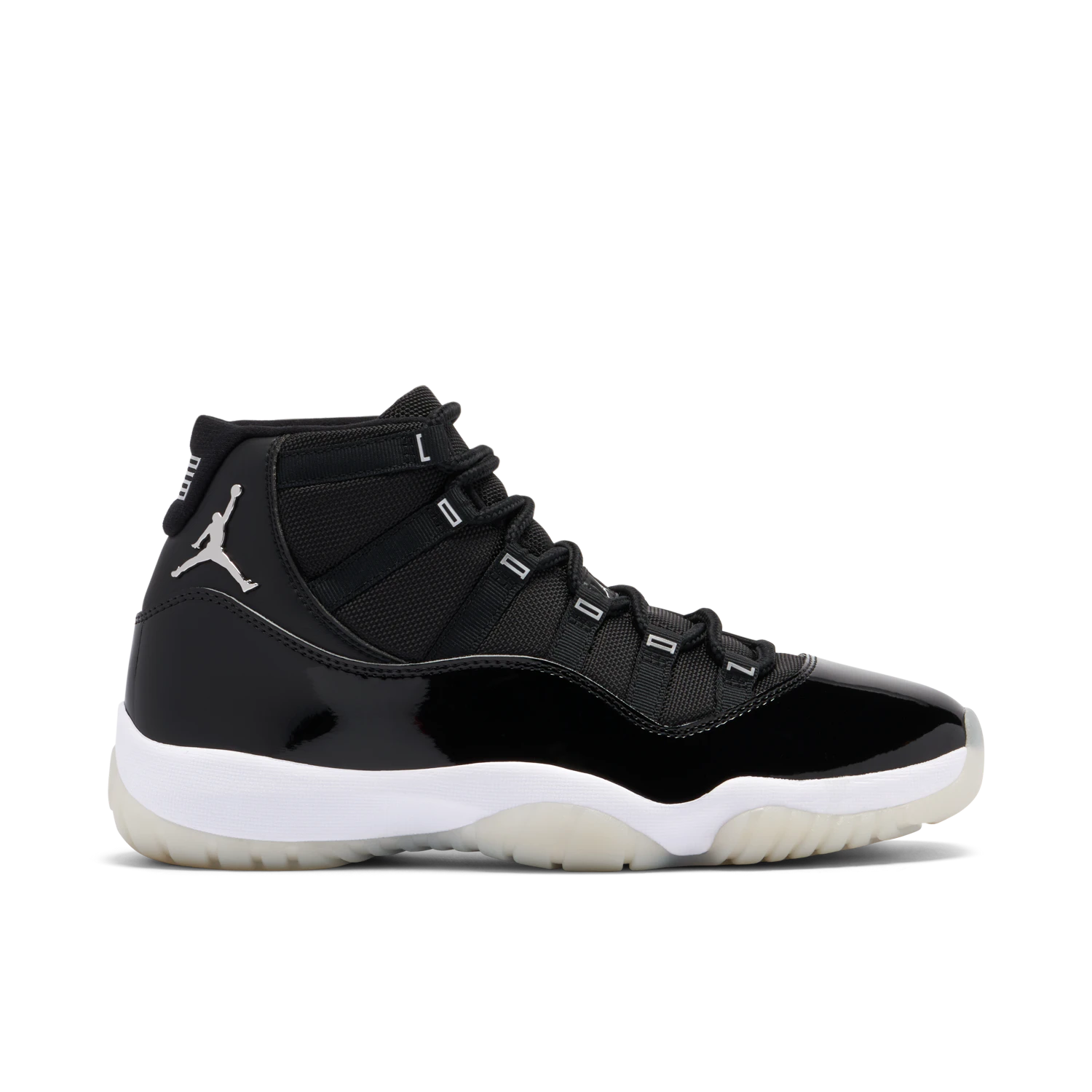 The Jordan 11 Jubilee showcases everything Hatfield envisioned for the sneaker 25 years ago; a performance product that can be worn easily both on and off the court. Features such as the two types of leather on the upper with hits of metallic lettering and Jumpman emblem add luxe elements to the athletic sneaker. A white midsole and foggy translucent outsole deliver contrast to the black sneaker. Carbon fibre plating on the sole provides stability and power to the wearer’s feet on the court.
