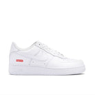 Supreme and Nike paid homage to an NYC classic with the release of the Nike Air Force 1 Low Supreme White. This collaboration adds Supreme’s world-renowned Box Logo to the side of a traditional all-white Air Force 1 design. This Air Force 1 Low is comprised of an all-white leather upper with matching soles and detailing. A red Supreme Box Logo placed on the outside heel completes the design.