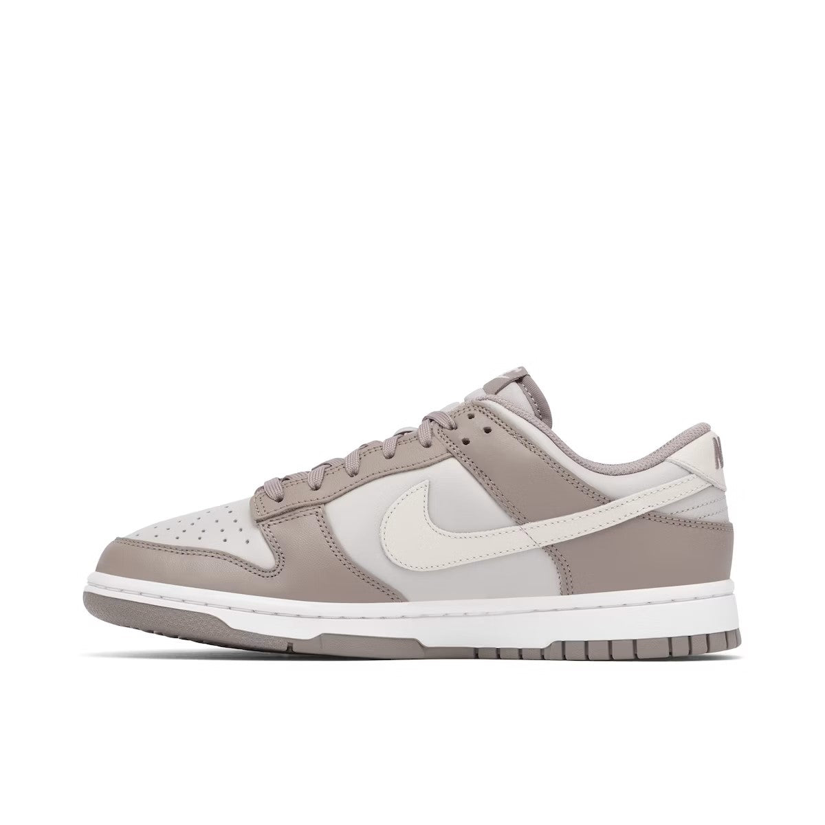 The Nike Dunk Low Bone Beige W is a women’s sneaker that comes dressed in multiple hues, with moon fossil, light orewood brown, light iron ore, and summit white being the main colours. This Low Nike Dunk has overlays, outsoles, laces, as well as lining all in a darker shades of grey than the light grey used for the base of the shoe. The model also boasts Swooshes marks in a lighter bone hue that creates a few minor contrasts displayed on its laterals.