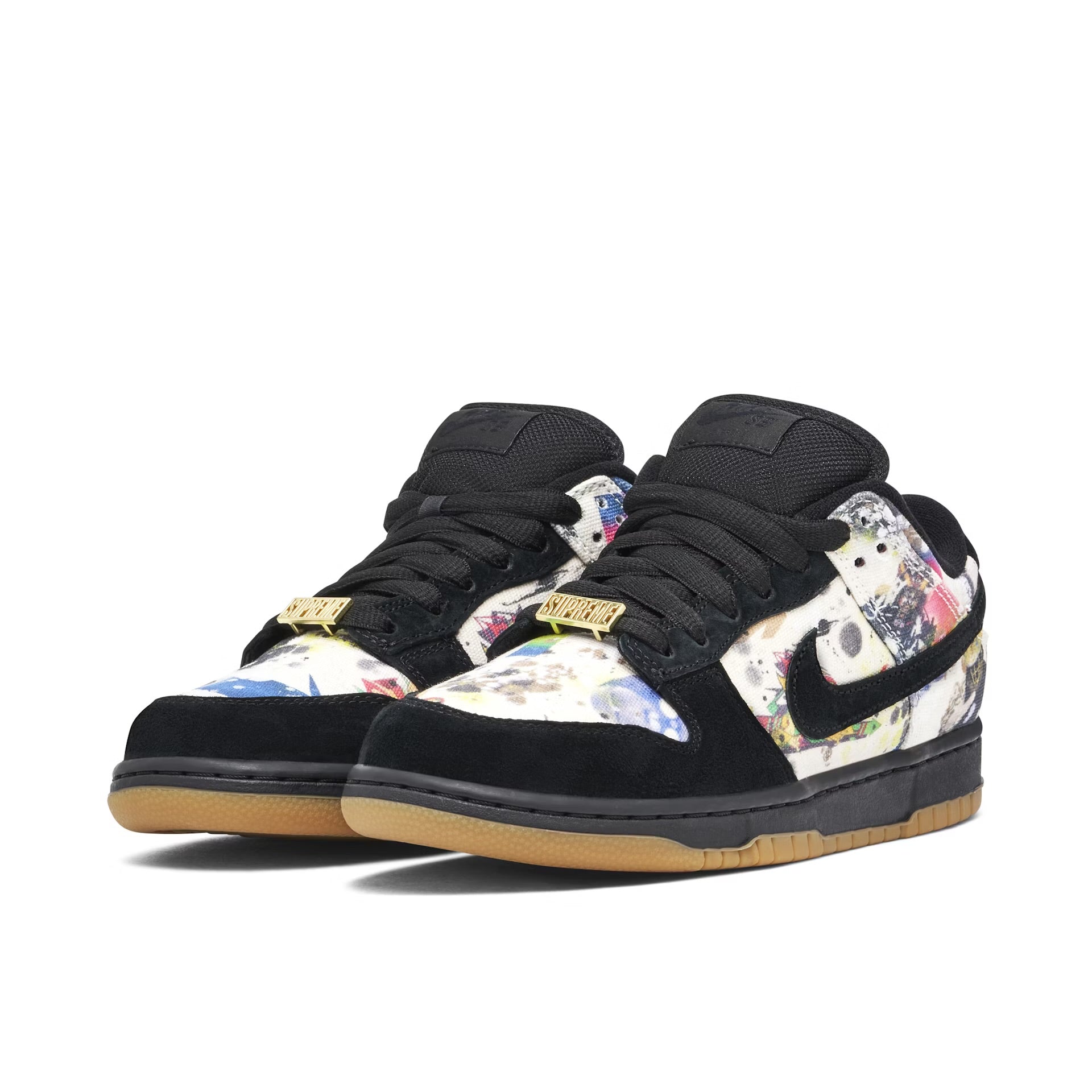 This unique SB Dunk Low features the art of the late Rammellzee, who has collaborated with Supreme numerous times over the years, including way back in 2003. The New York artist lends his iconic style to the upper of this limited edition sneaker, which showcases his unique graffiti style motifs.